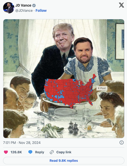 And what the hell is this? (It is a real tweet from vice-president-elect JD Vance)