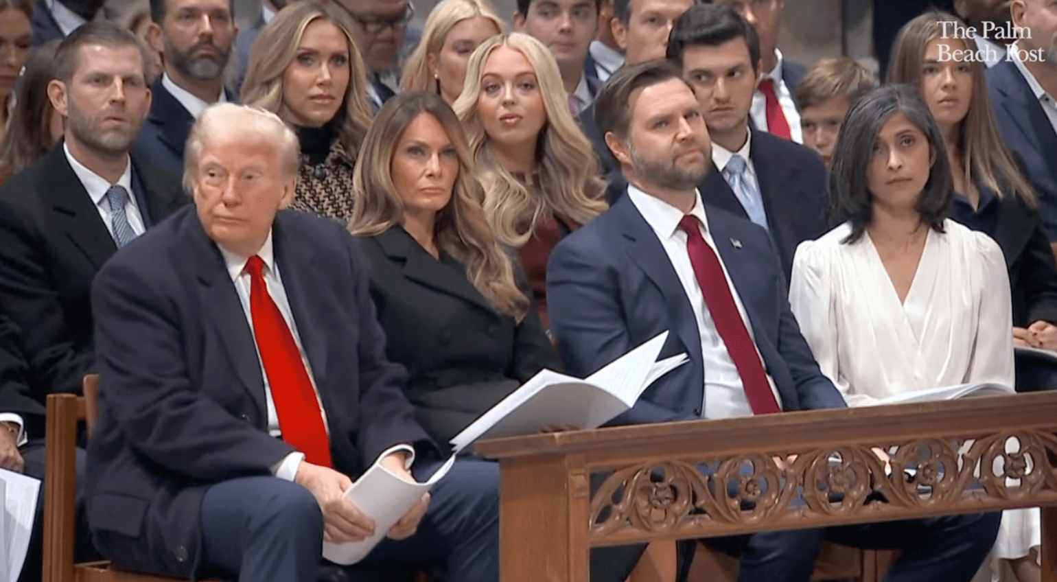 It’s worth watching this clip from the service via the Palm Beach Post on YouTube just for the reaction shots of the president and his entourage.