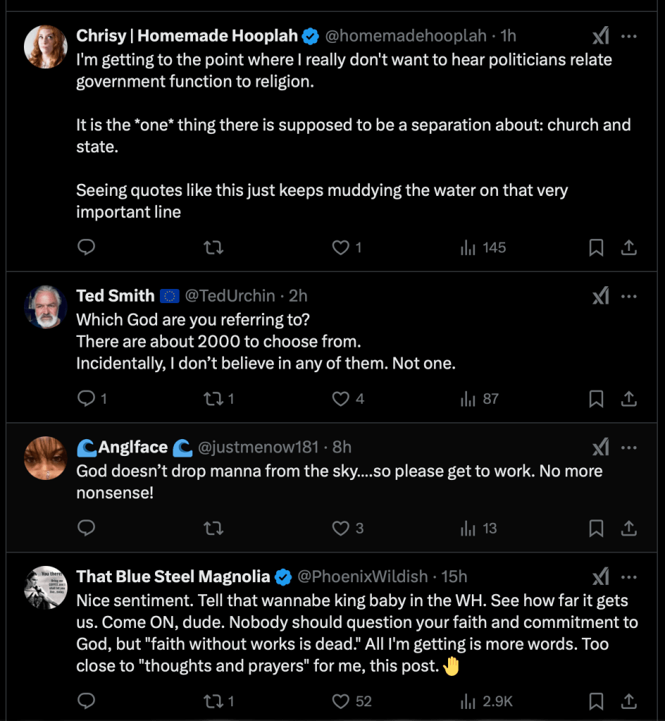 “Presidents come and Presidents go. Through it all. God is still on the throne.”