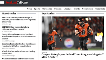 The Portland Tribute had a breaking news story about the president sending troops in to fight protesters, which quoted Portland Mayor Keith Wilson.