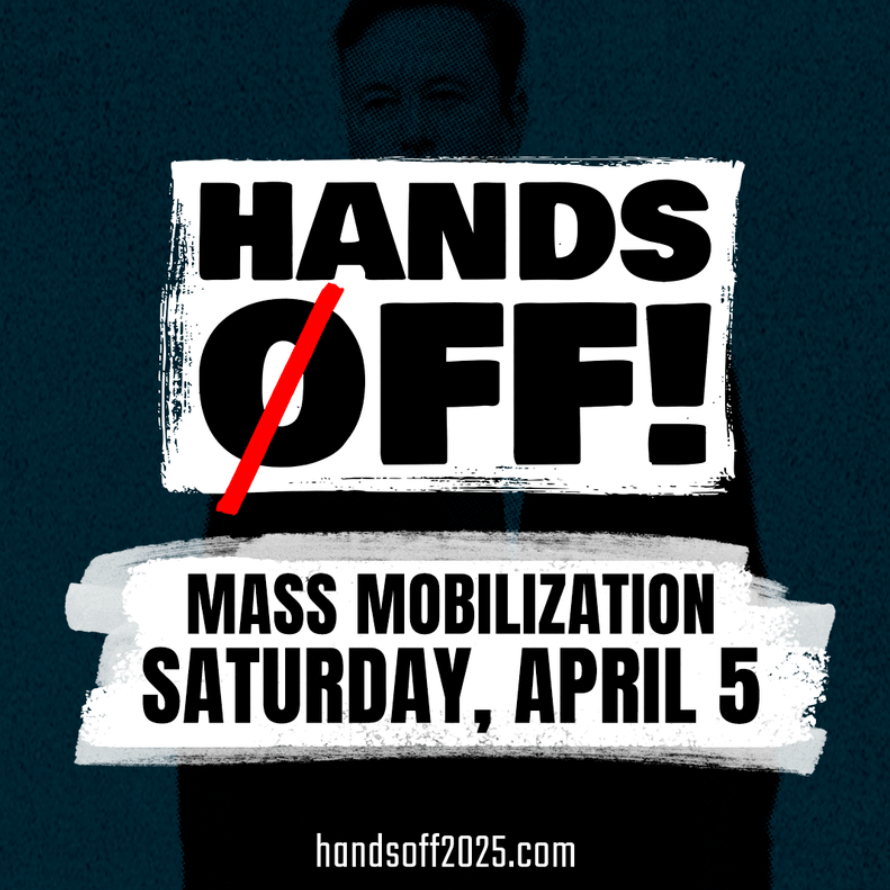 By Michael Woyton Since the Mad King was inaugurated and he unleashed DOGE on the federal government, here have been protests all over the country — at Social Security offices, Tesla dealerships, post offices, business boycotts and more. Next, on Saturday, April 5, people in hundreds of cities in every state of the union willContinue reading “‘Hands Off!’ Protests Set for Saturday”